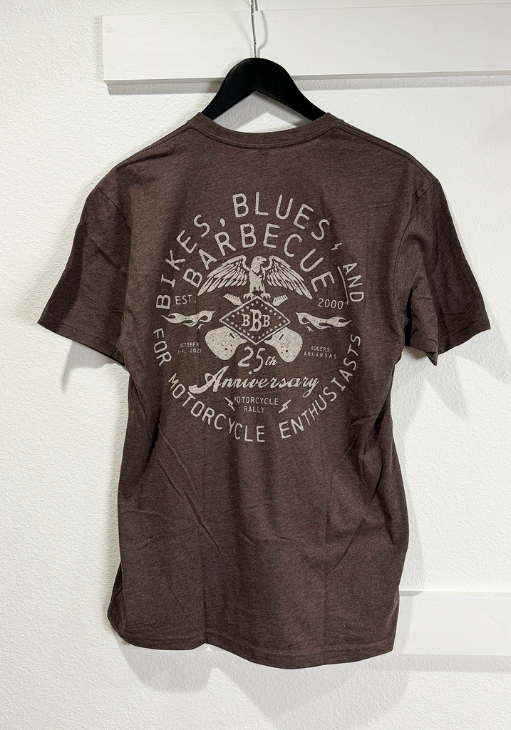 Here it is! The Official T-Shirt for the 2025 Bikes Blues and BBQ Motorcycle Rally. 2025 BBBQ Enthusiast's is printed on a 60/40 combed ring-spun cotton/polyester tshirt